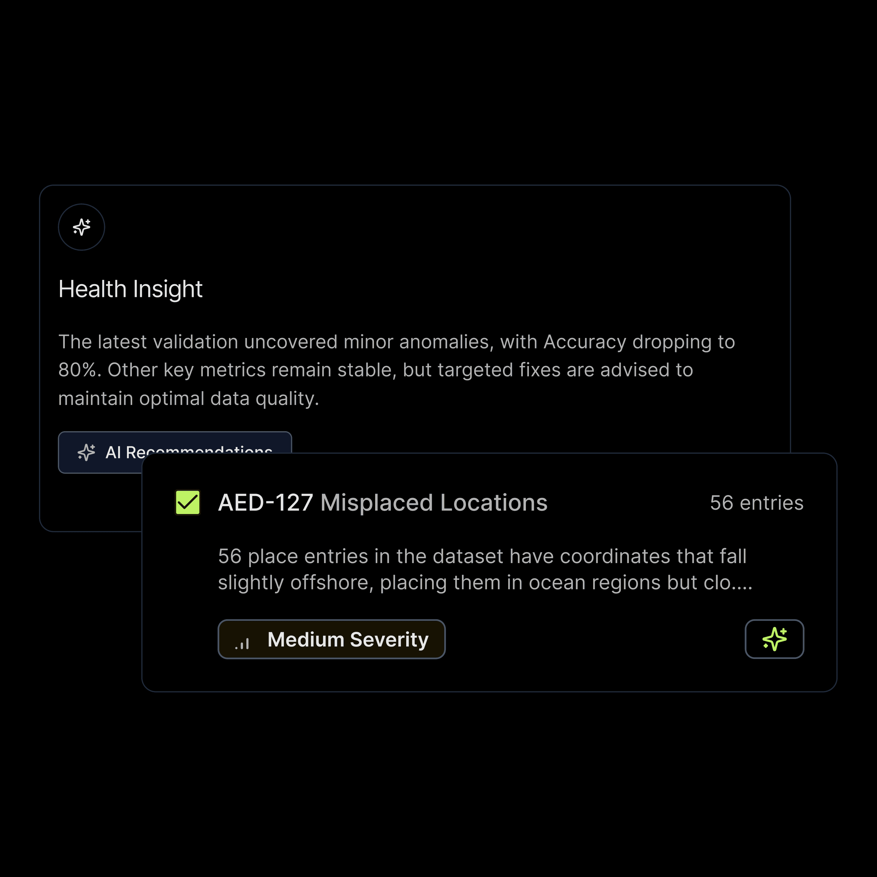 Drawing on our deep expertise in geospatial engineering, analytics, and AI, we built a platform that makes the process of data quality automatic and scalable. Every feature is designed to help organizations move faster, avoid risk, and get accurate insights from their location data.